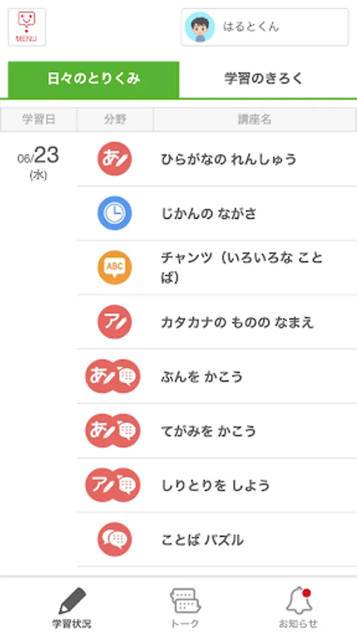 It can be used in all courses of correspondence education "Smile Semi" learned on a tablet.