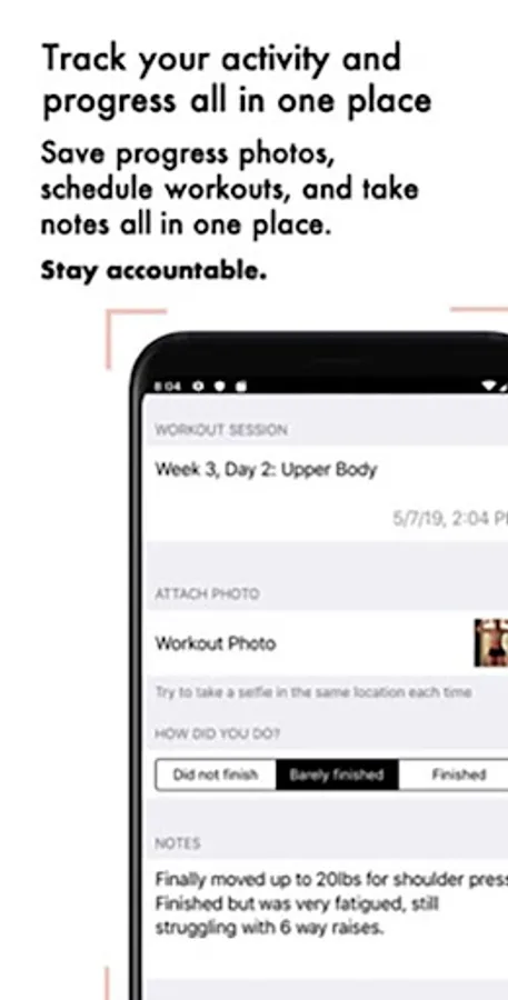 • Workout tracking capabilities to log when you’ve completed workouts and track your progress directly in the app.