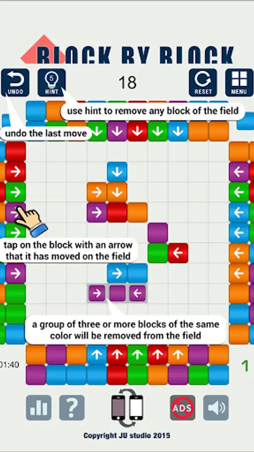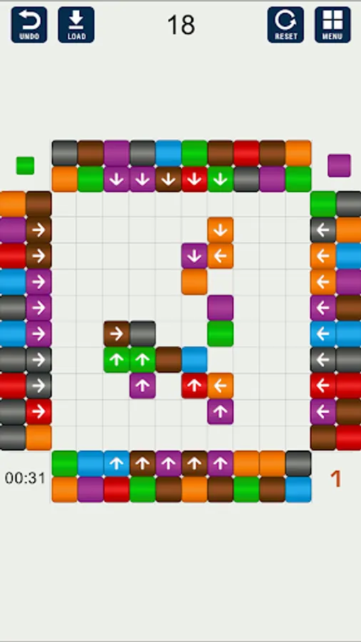 To do this, click on the blocks with an arrow outside the playing field. The block will begin to move in the indicated direction.