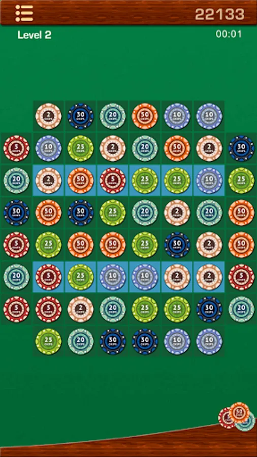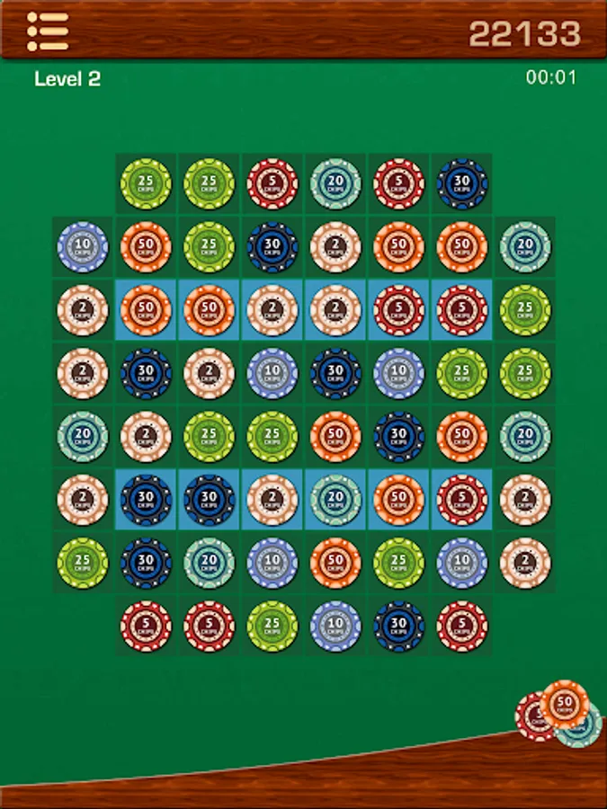 Swap the chips to create a chain of 4 or 5 chips to create a bomb.