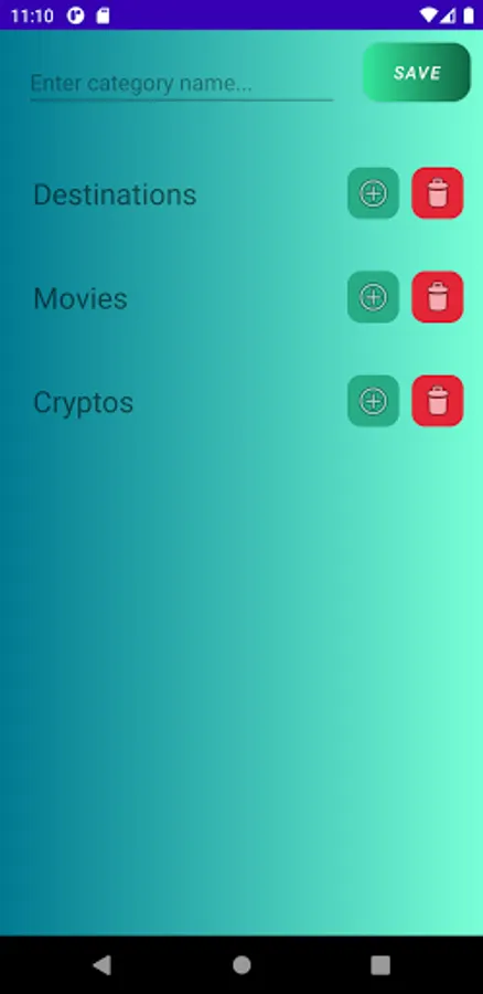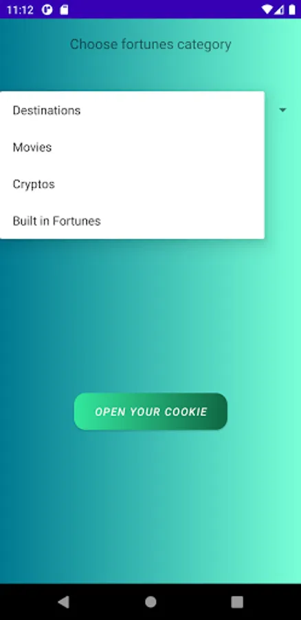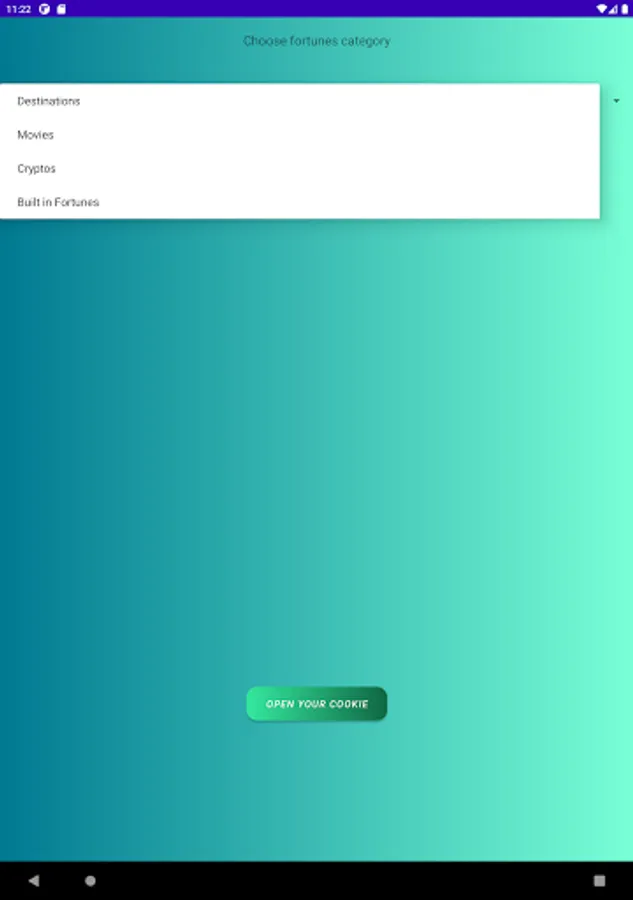 In this app you can create your own custom categories with answers and set a selected category for your cookie fortunes.
