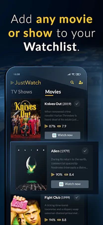 ✔️ Search Engine: 90,000+ movies and shows listed with trailers, synopsis, cast, ratings and VOD offers.