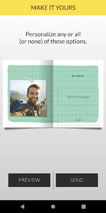 You can even customize these cards like you can any greeting card: Add your own note, drop in a photo, and even add your own signature (or finger doodle) for that authentic “I Actually Care About You” feel!