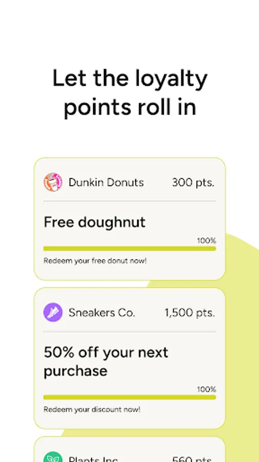 Never miss out on offers again. With Teya Rewards, you'll be notified when a reward is waiting for you. Only choose the perks you love, whether it’s a free coffee or a discount burrito.