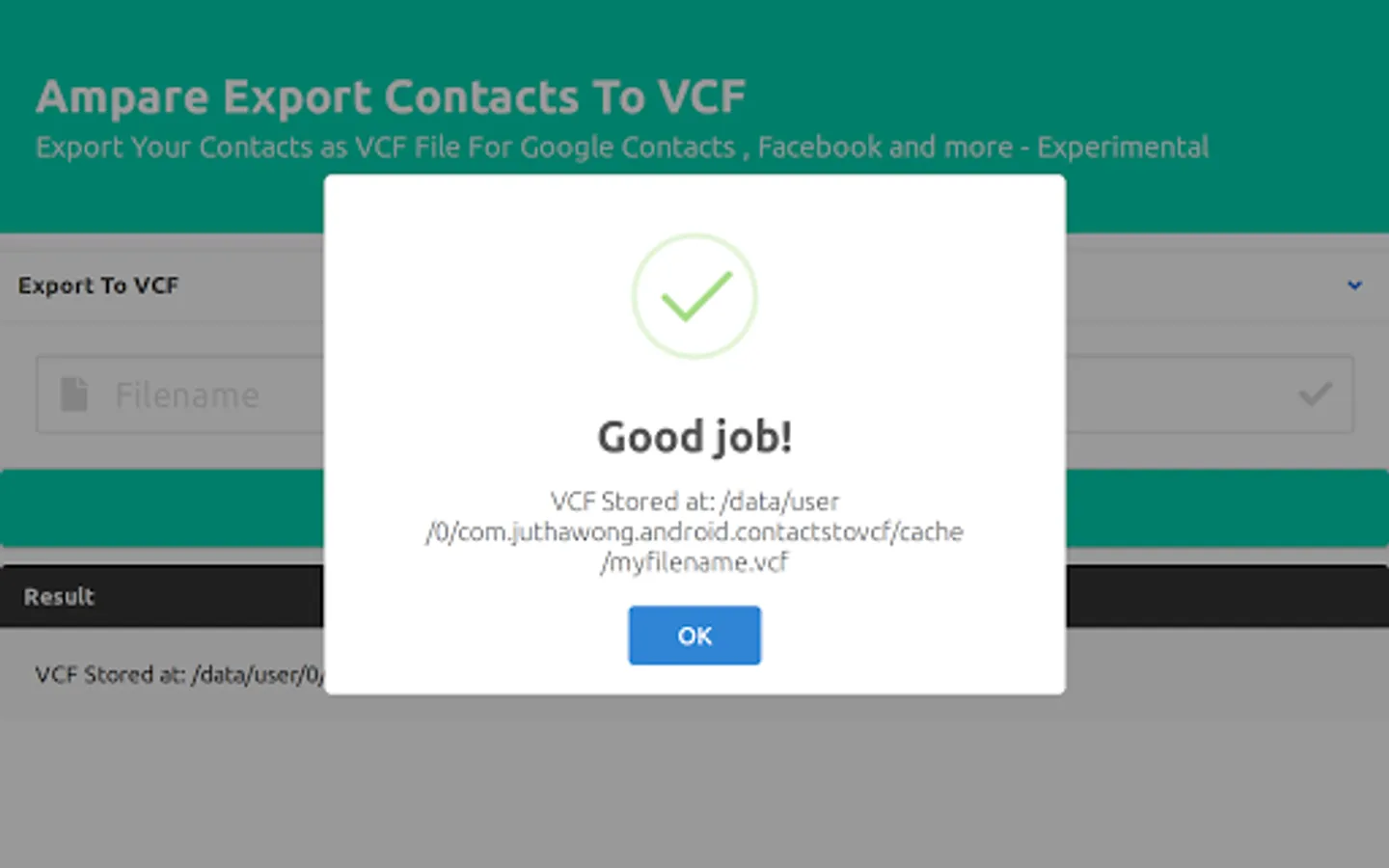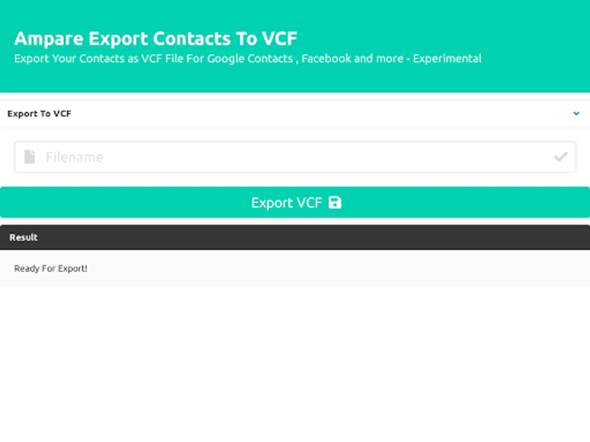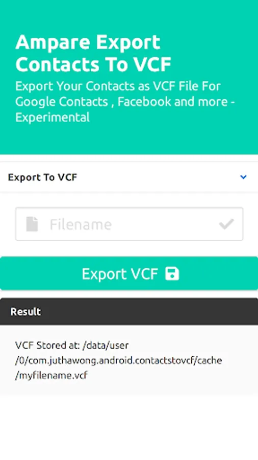 Ampare Export Contacts To VCF Free is An Experimental Application That Export All Your Phone Contacts To VCF That can be import by Popular Email and Social Network Provider.