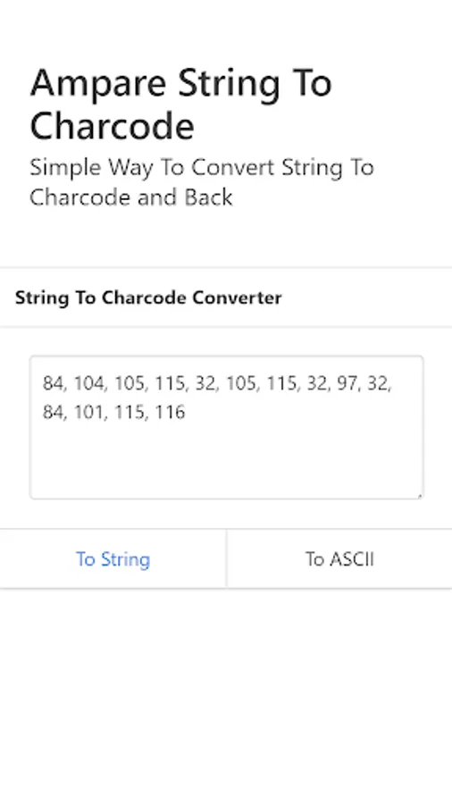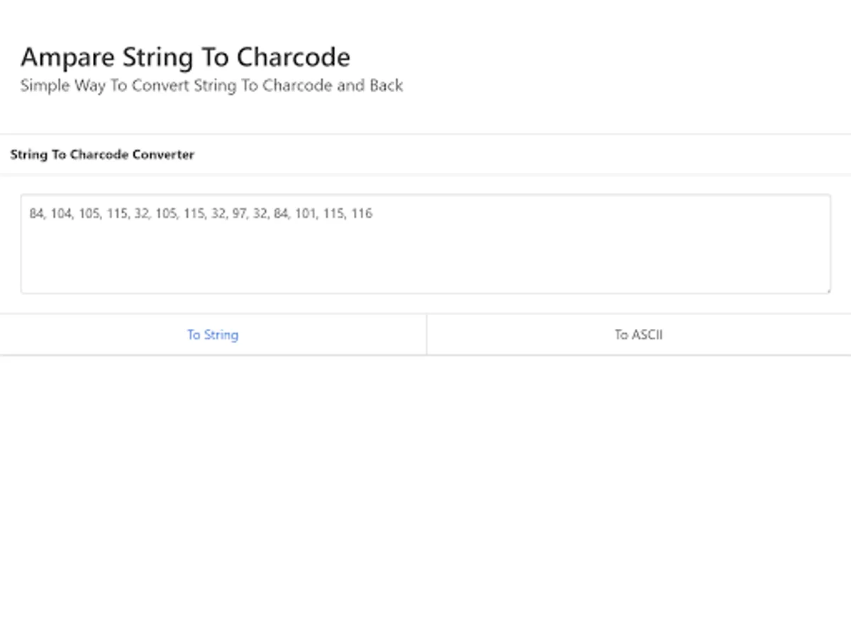 Want To Learn How Character Encoding Works? This is Simple and Practical App To Convert String To Charcode and Back Easily.