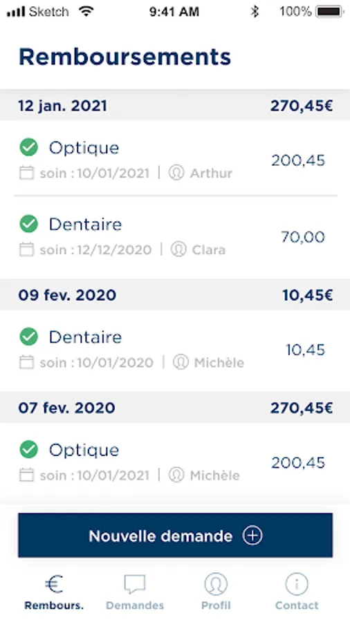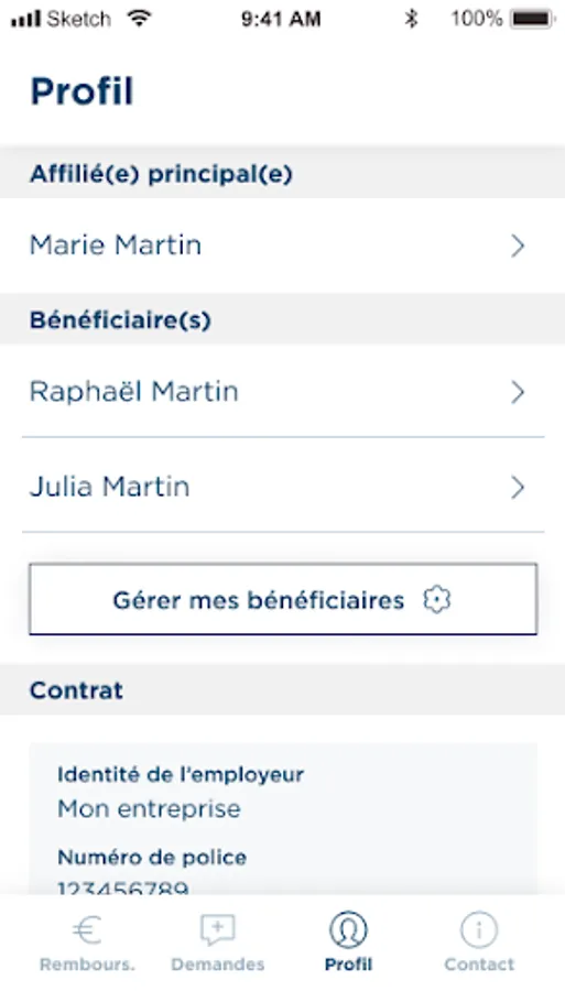 Your Jutheau Husson application allows you to view your reimbursements and simply perform the procedures related to your health costs and management of your account. For all requests for reimbursement, quotes or hospital care, all you need to do is complete the corresponding form and take a photo of your documents from your application. You can also consult your personal information and communicate to Jutheau Husson any modification to be made (add a beneficiary, modify your address, send a RIB, etc.)