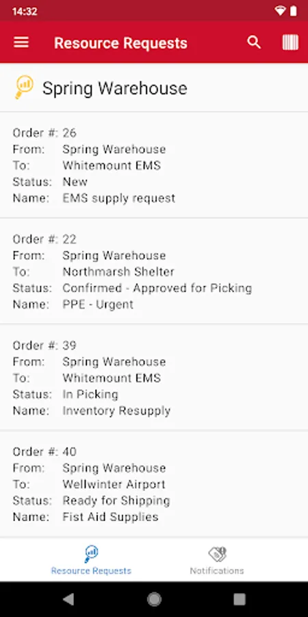 • Receive and view inventory notifications