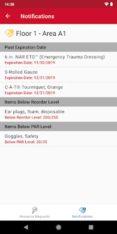 • Identify items, assets, and kits that are below re-order or PAR level