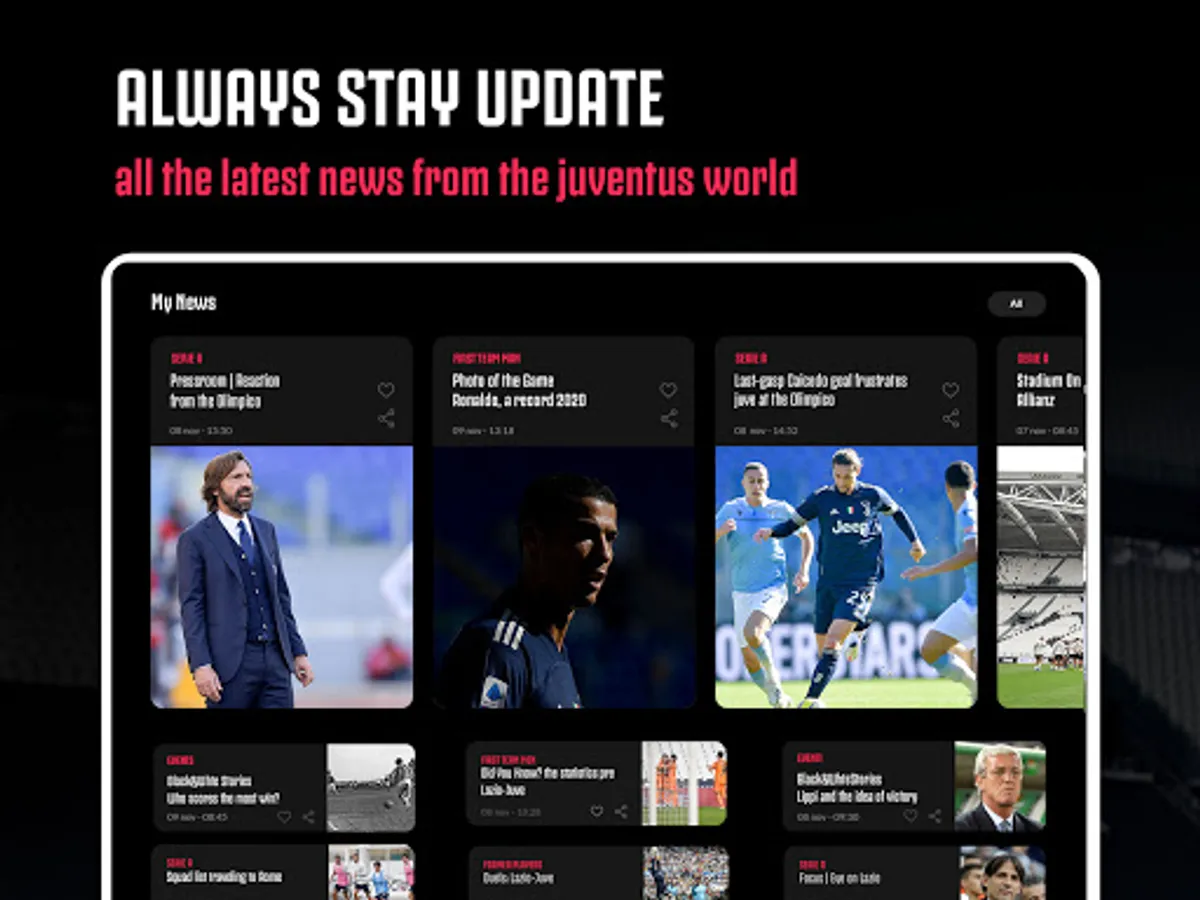 Juventus is now just one touch away from you. The new official app lets you live the entire experience every day and everywhere. Its new interface has been completely renewed so that you can easily find everything you’re looking for.