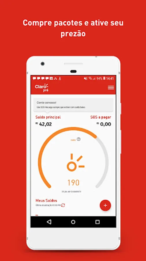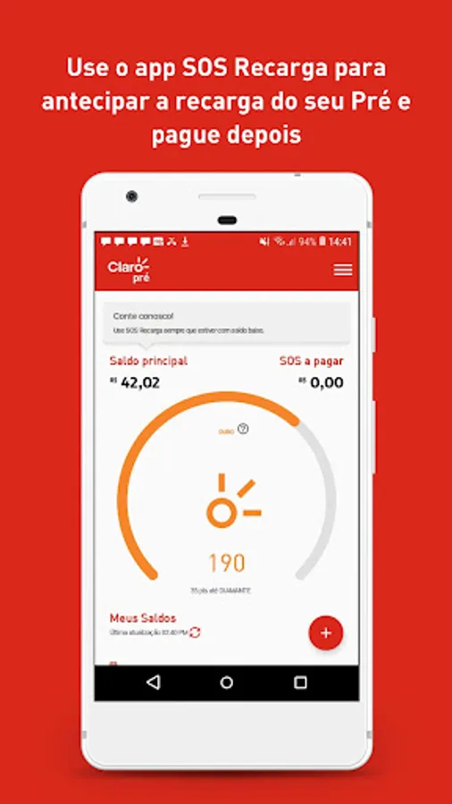 Ah, an important reminder: browsing the app is free. That's right! You use without spending anything on your Internet and can surf even when you are out of credits. You do not need a login and password to use the SOS Recarga app, but we need you to turn on the "Mobile Data" option to identify that your number is from Claro.