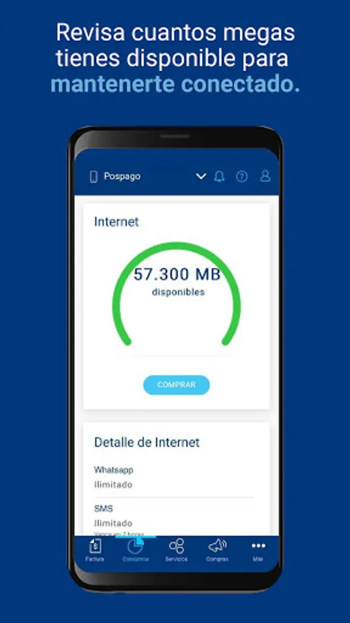 *Administra todos tus servicios de tu línea Pre pago, Post pago y Plan Hogar.
