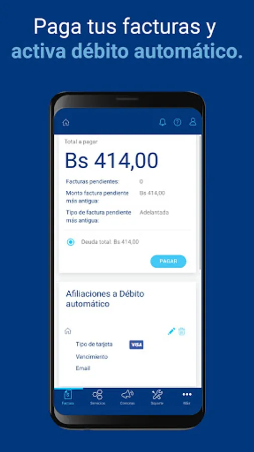 * Revisa y paga tus facturas con QR, tarjeta de débito o crédito.