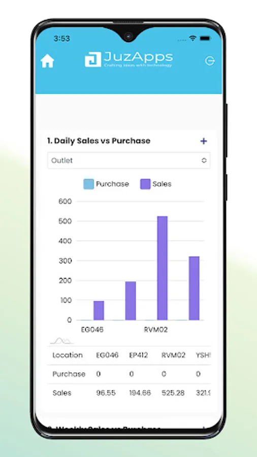 Juzapps Business Information Analytics helps customers to know information about their sales about all location sales handy.