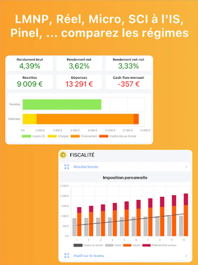 - Calculate taxation (real, micro, LMNP, Pinel);