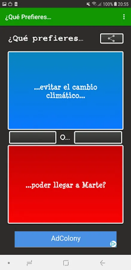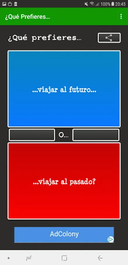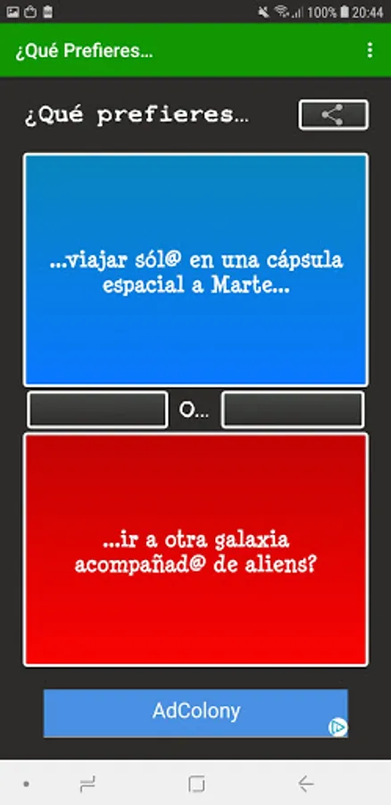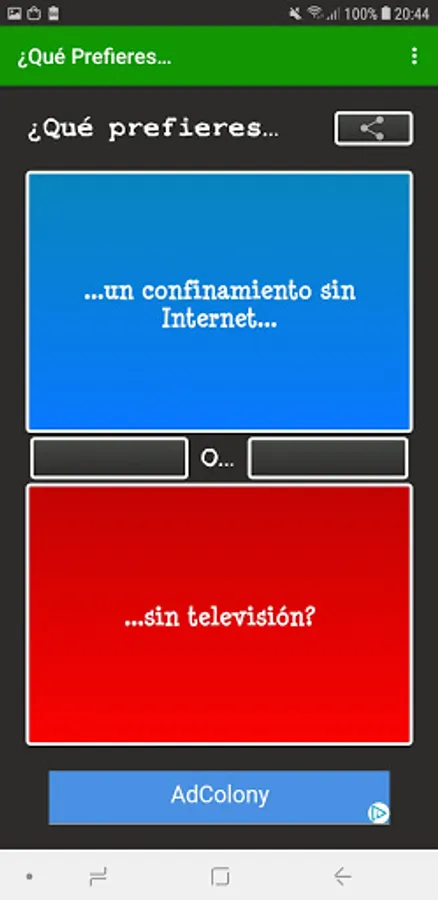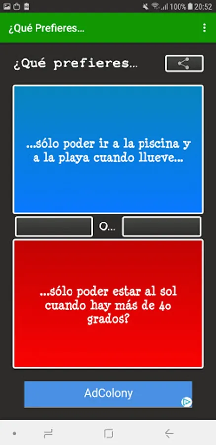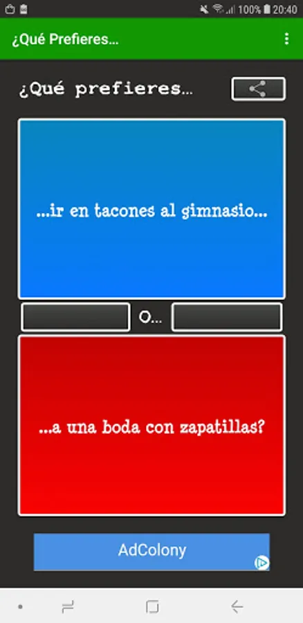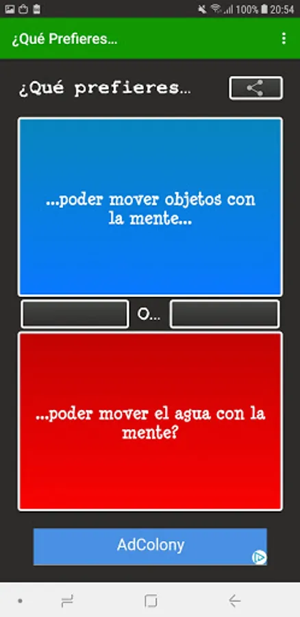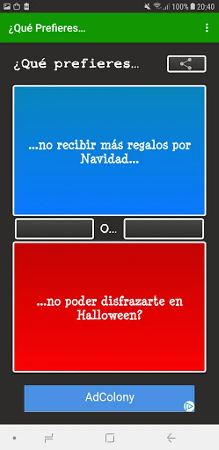 What do you prefer..? In Spanish it includes a multiplayer mode in which you can answer questions such as What do you prefer ...? at the same time as your friends and see what they respond in real time. The multiplayer mode of What would you rather ..? In Spanish it is ideal to get to know your friends or someone you just met better.