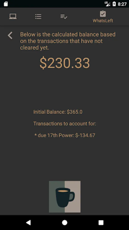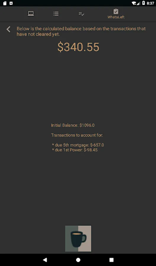 I recommend that you create a budget, but this app can be helpful for times when you need to decide if you have enough money for an important investment (or maybe you didn't stick to the budget that well).