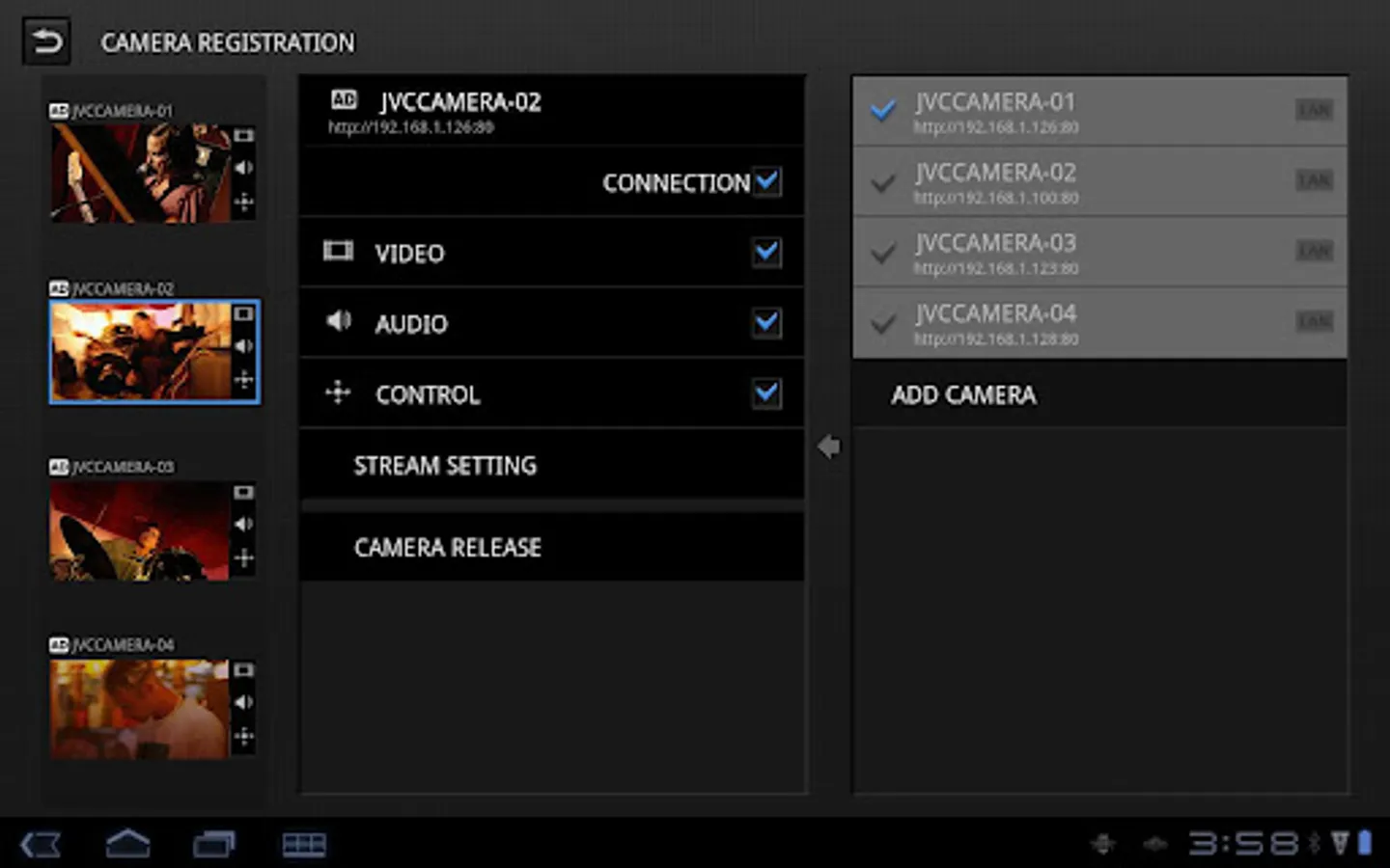 You can operate JVCKENWOOD's Live Streaming Camera GV-LS2/GV-LS1 (max 4 sets) with fingertip from the distant place.