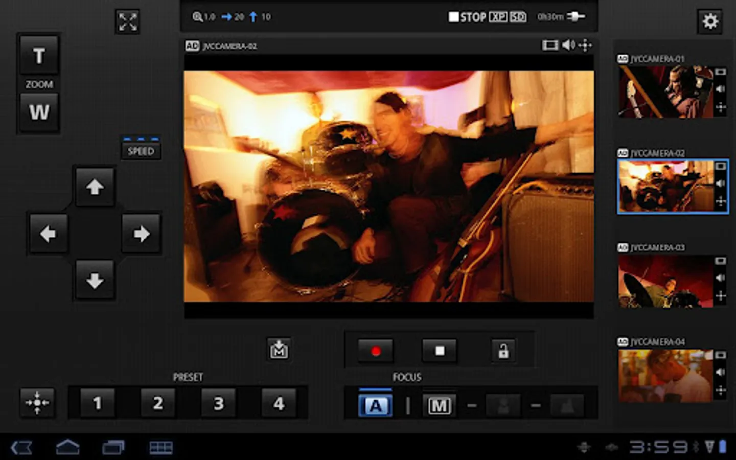This Application software enables you to enjoy camera operations such as Recording START/STOP, PAN/TILT/ZOOM controls and changing the manual camera settings. In Addition, you can save four PAN/TILT/ZOOM positions as presets and call them.