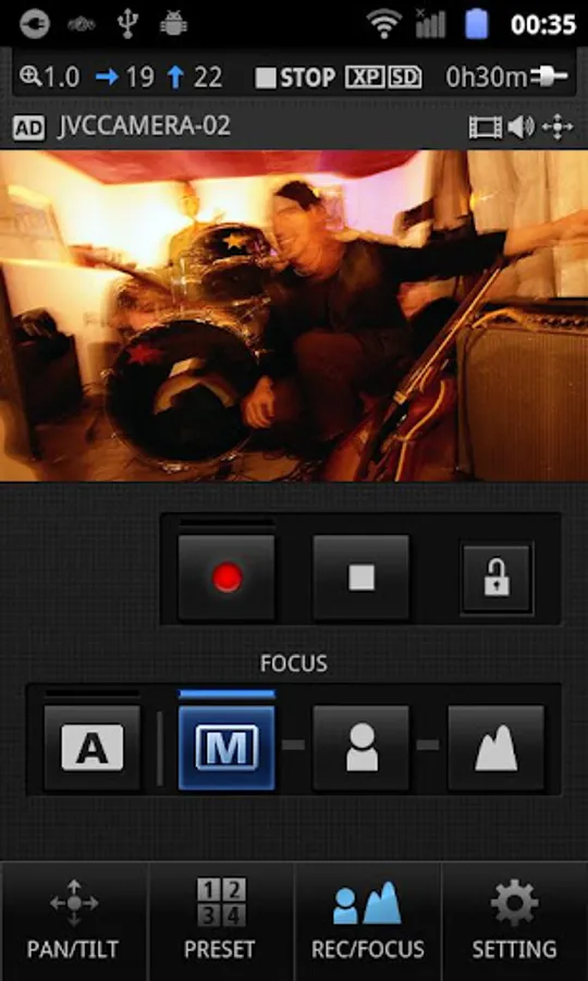 This Application software enables you to enjoy camera operations such as Recording START/STOP, PAN/TILT/ZOOM controls and changing the manual camera settings. In Addition, you can save four PAN/TILT/ZOOM positions as presets and call them.
