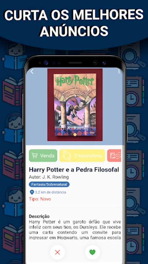 Do you really enjoy reading and looking for new books? With you in mind, we created Livroo, an app where you can find advertisements for books near you. Also you can organize your readings within the app.