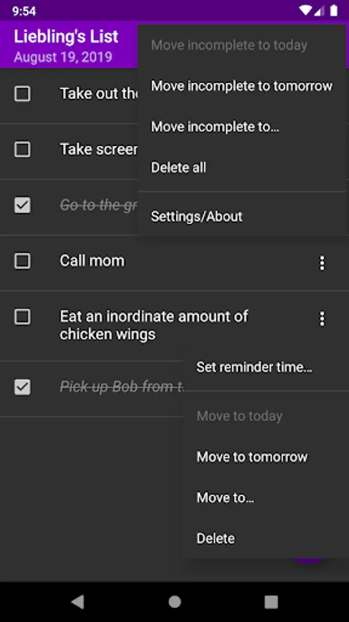 - Optional daily notifications to remind you of all remaining tasks for the day