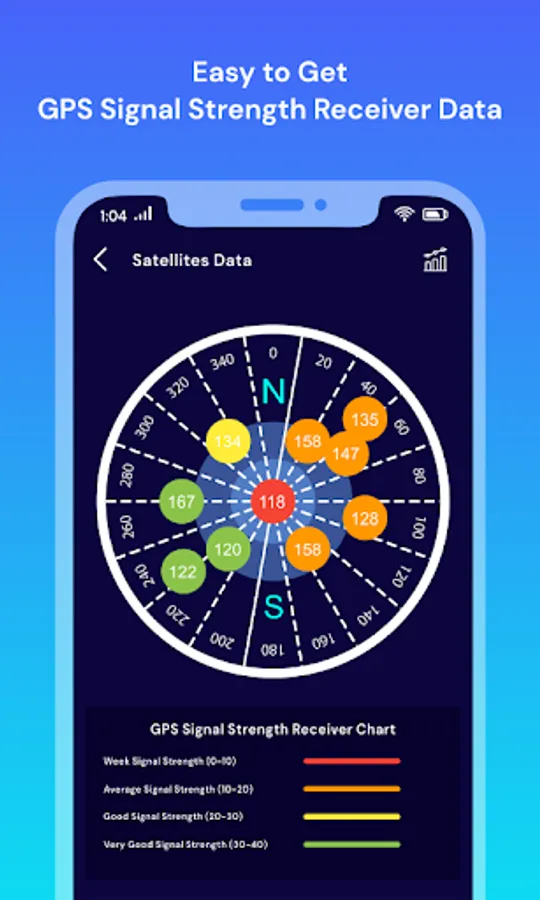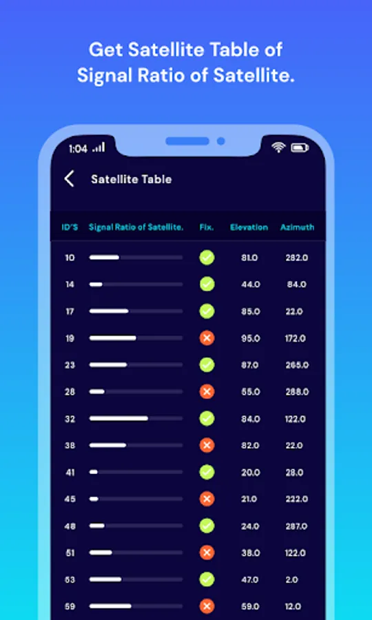 Check Satellites position with signal strength and get all info with satellite info graph.