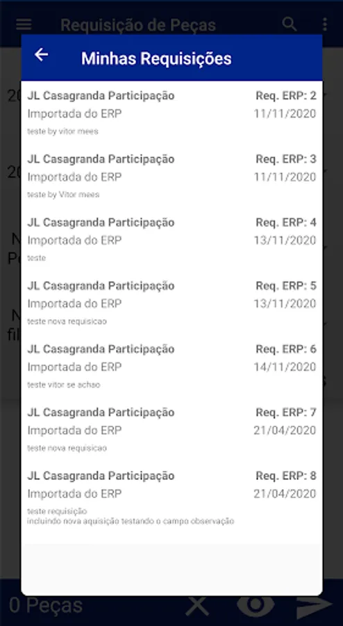 About Requisição de Peças