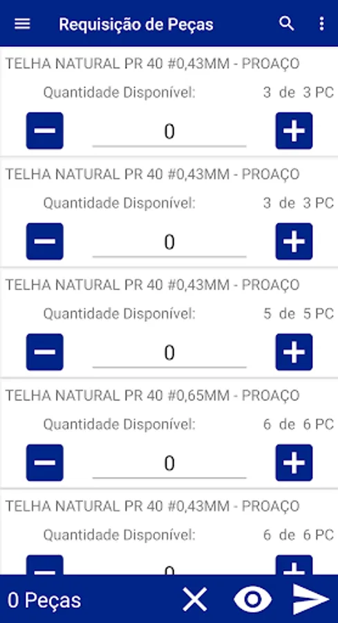 Requisição de Peças Screenshots