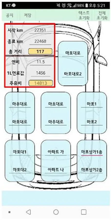 -In addition, if you enter the distance, fuel efficiency, and the current fueling cost, such as km when starting from home, and km after completion of the flexure work, the oil price consumed by this flex job is calculated, so that you can see how much will remain in the flex allowance.