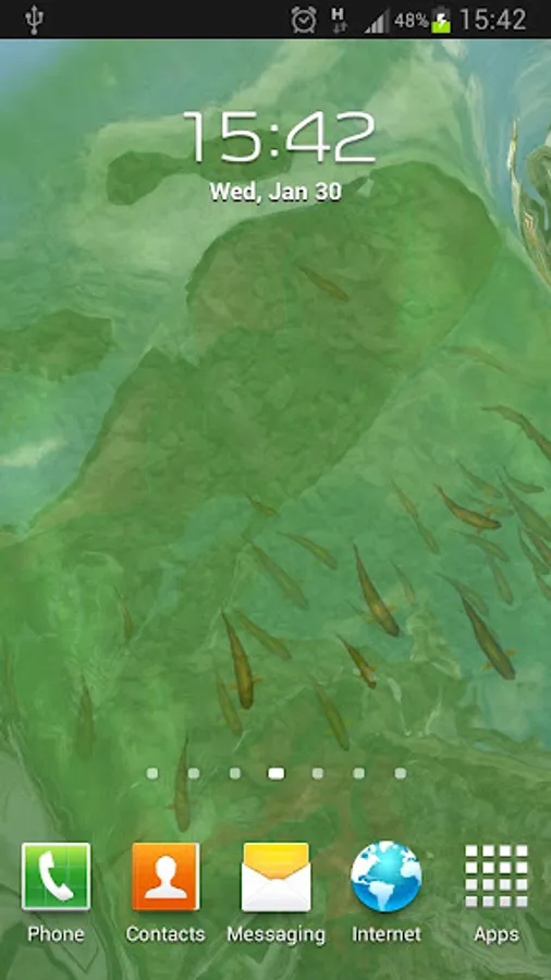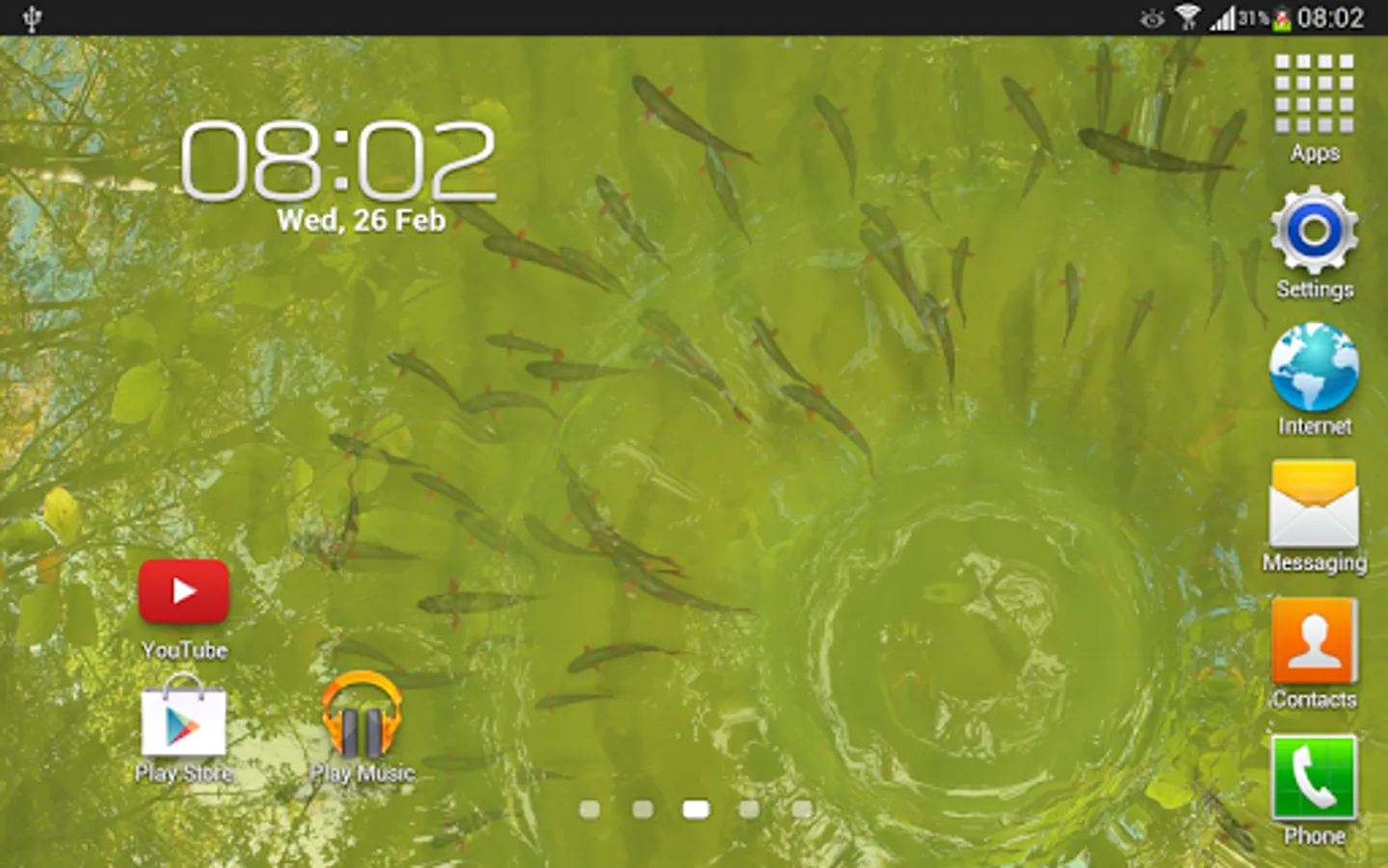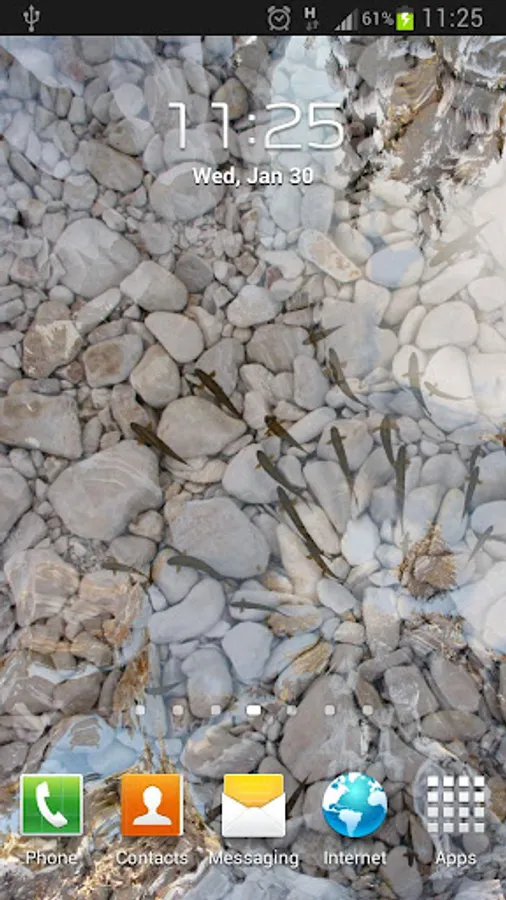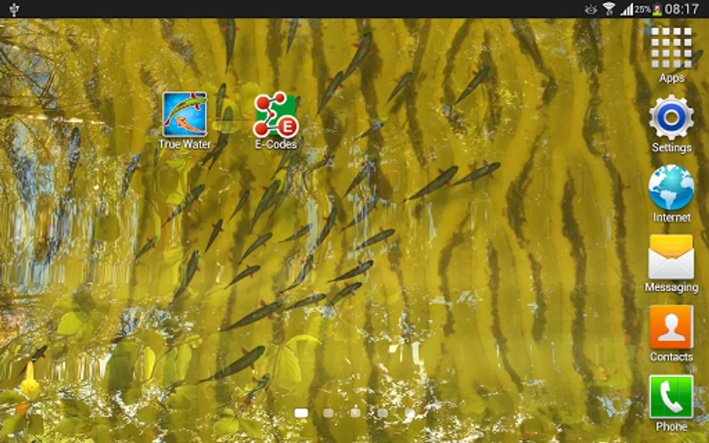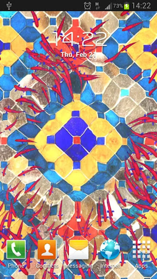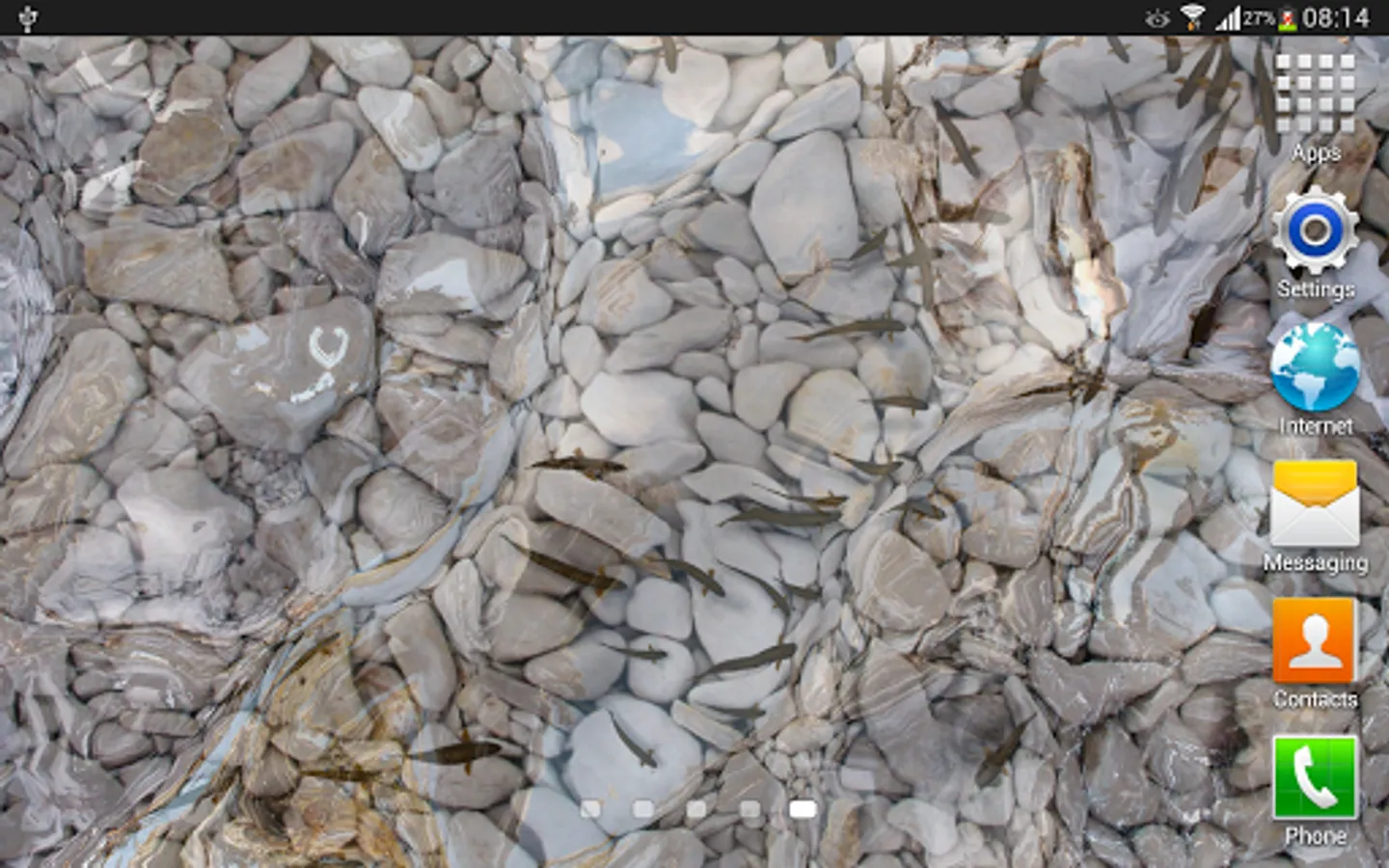 Beautiful live wallpaper with interactive water ripples and school of fish happily exploring the home screen, powered by top quality HD graphics and OpenGL 2.0 technology.