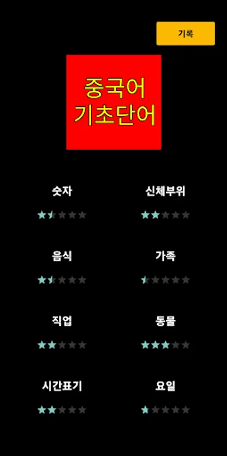 You can learn Chinese numbers, body parts, food, family, occupation, animals, timekeeping, day of the week, greetings, and emotions.