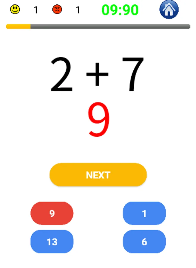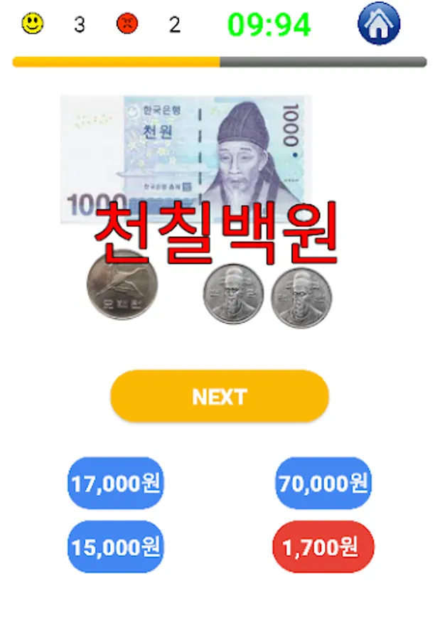 Solve the counting, money counting, addition, and subtraction math quiz within the time limit.