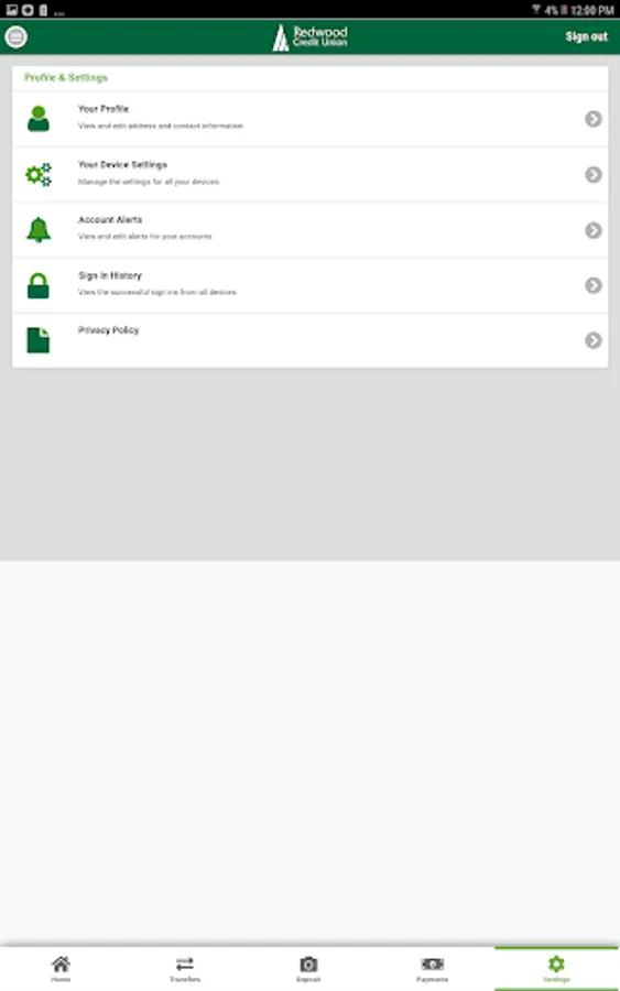 Redwood Credit Union’s Mobile App for Android devices is free and secure for Members.
