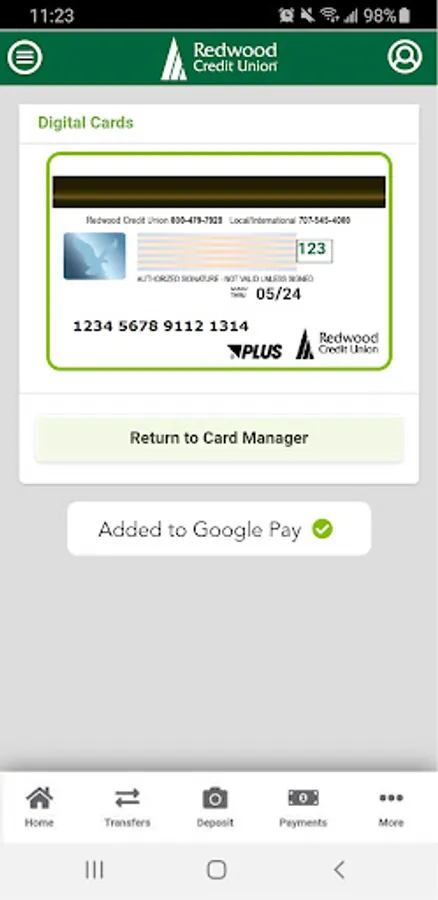 This update gives you the ability to automatically upload your RCU Visa credit and debit cards to your mobile wallet (Google Pay) through the Card Manager menu. If your card is lost, stolen, or affected by fraud, this update also provides immediate access to a digitally issued card which can be used while you wait for your new plastic card to arrive by mail.