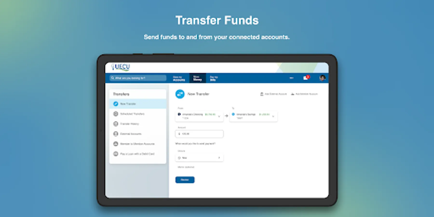 Fund Transfers - Send funds to and from your connected UECU accounts and external bank accounts through our easy-to-use fund transfer capability.