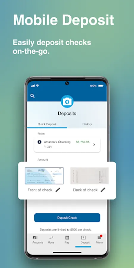 Deposit checks by snapping a photo (eligibility requirements apply)