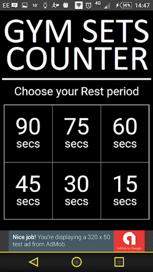 Choose your Rest Period from 15, 30, 45, 60, 75 and 90 seconds