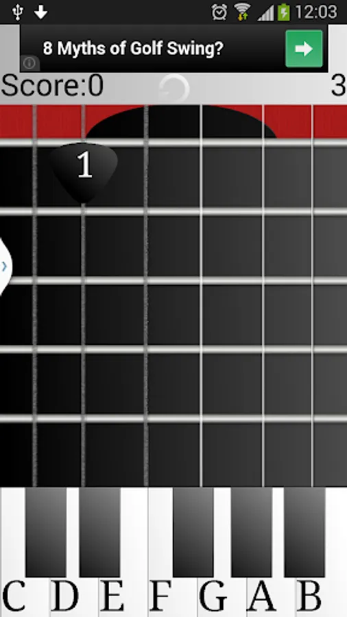 * Survival: Select the note that corresponds to the fret and make the most points before you select a wrong note or the timer runs out (5 seconds per note.)