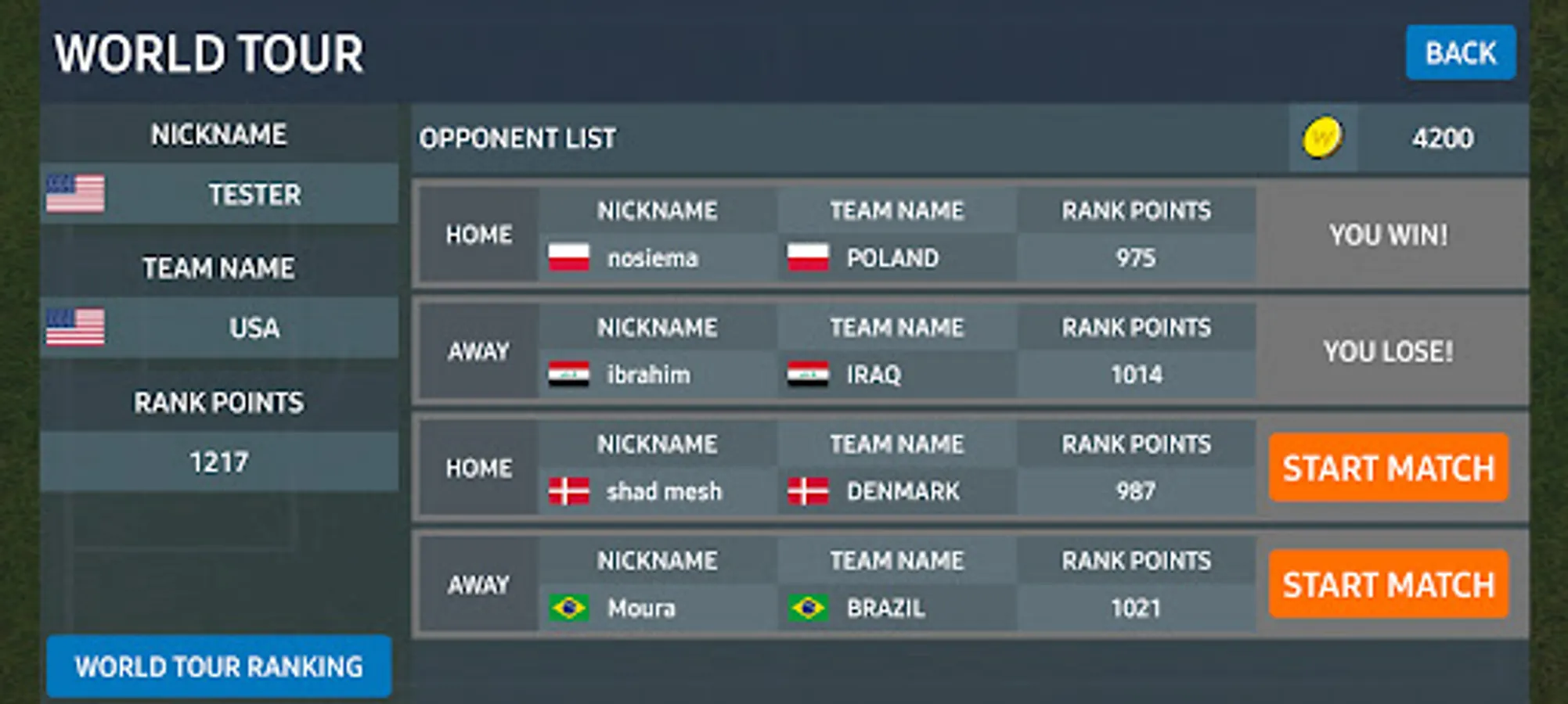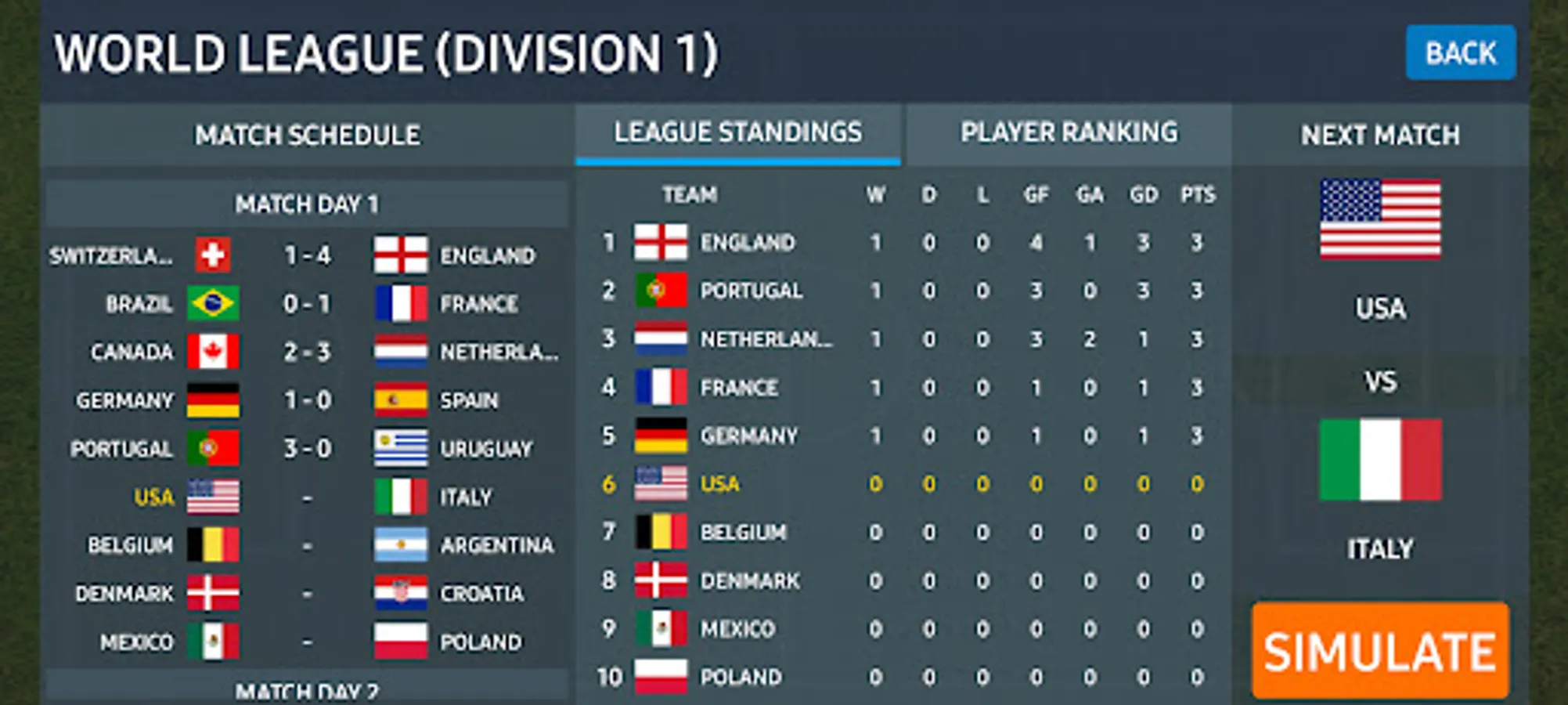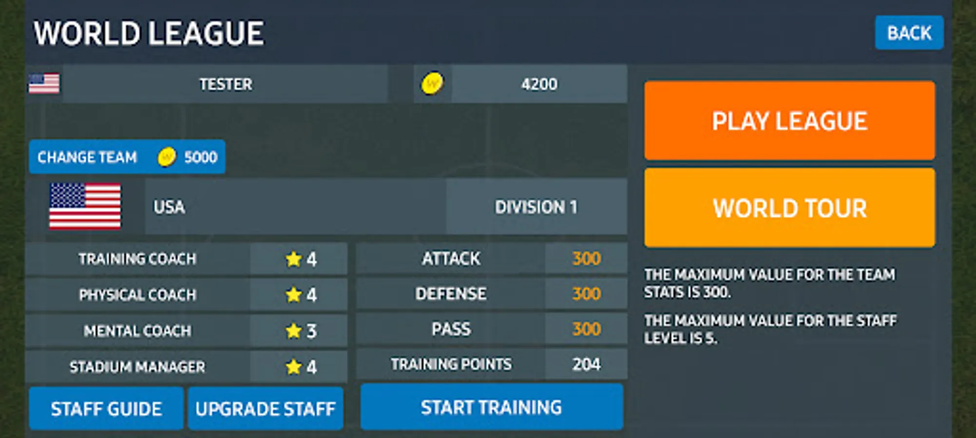In World League mode, you will pick your team and make it stronger.