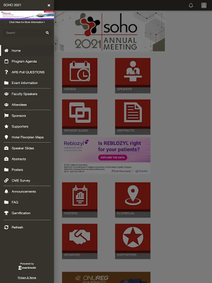 SOHO was established in 2012 with aims to promote worldwide research, education, prevention, clinical studies and optimal patient care in all aspects of hematologic malignancies. Since that time, SOHO has grown from a membership base of 400 to more than 5,000 in 2021. Organized by its founders and world class committees, SOHO is the only society specific to this field. The SOHO annual meeting program focuses on cutting-edge advances and practical clinical applications, with special emphasis on novel biological and therapeutic approaches, for patients with hematologic malignancies. In addition, the presenters are a multidisciplinary group of internationally recognized experts that represent the spectrum of these diseases. The SOHO Annual Meeting mobile app contains the scientific program, speaker listing, copies of presenters’ slides, abstracts, posters, sponsor and supporter listings and other helpful resources for those interested in the field of hematologic oncology. Annual meeting topics include: • Acute Lymphoblastic Leukemia • Acute Myeloid Leukemia • Chronic Lymphocytic Leukemia • Chronic Myeloid Leukemia • Hodgkin Lymphoma • T-Cell Lymphoma • Mantle Cell Lymphoma • Aggressive B-Cell Lymphoma • Indolent B-Cell Lymphoma • Myelodysplastic Syndromes • Myeloproliferative Neoplasms • Multiple Myeloma • Cellular Therapy We would like to thank all SOHO members, attendees and industry partners whose contributions and participation have been essential to the success of the society.