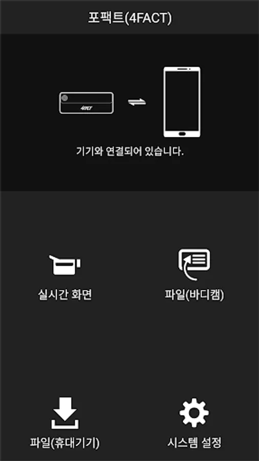 4FACT BODYCAM is an application dedicated to Pocket Body Cam products and cannot be used with other devices other than the corresponding model. With 4FACT BODYCAM, you can use functions such as live screen, video playback, video download, and camera settings.