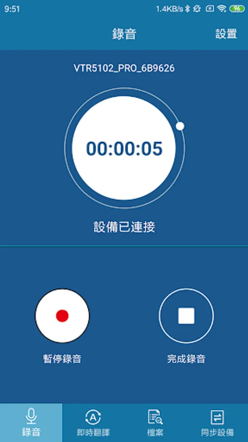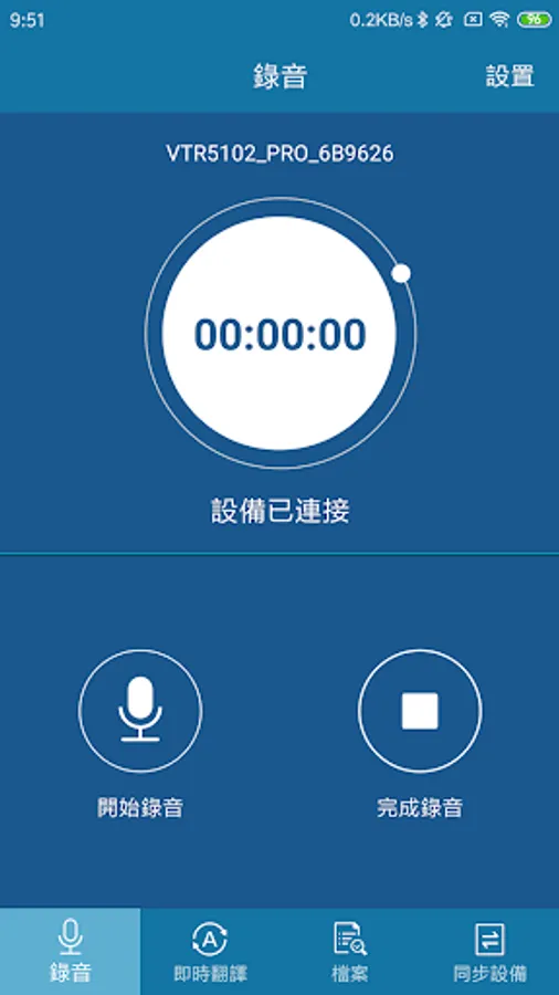 Use this application VTR TW to connect with a smart device through Bluetooth, control the recording of the smart device, and synchronize the recording files of the device to the mobile phone. The recording files can be transcribed, translated, and shared through this application.
