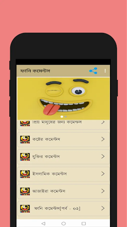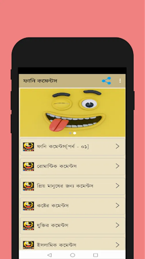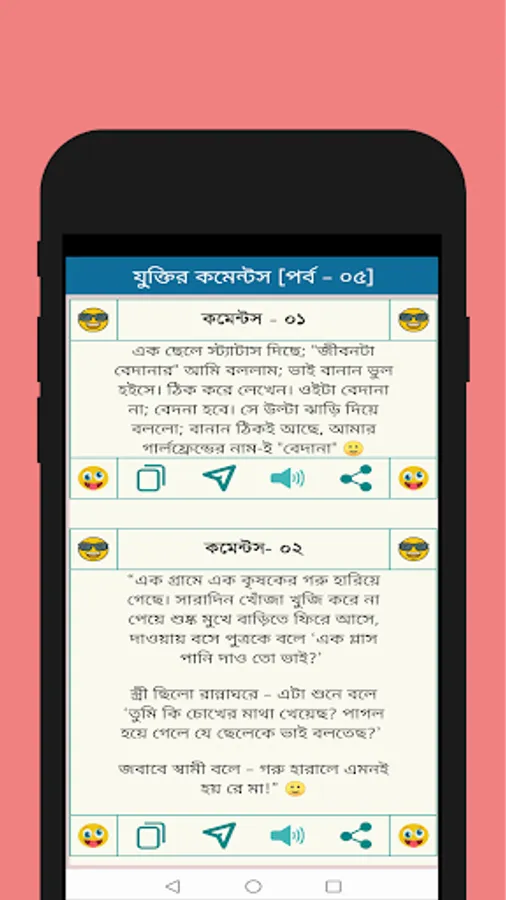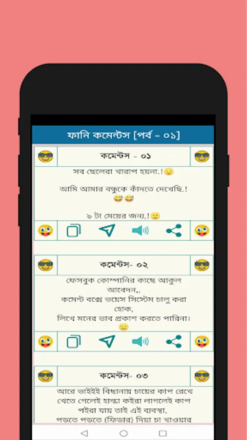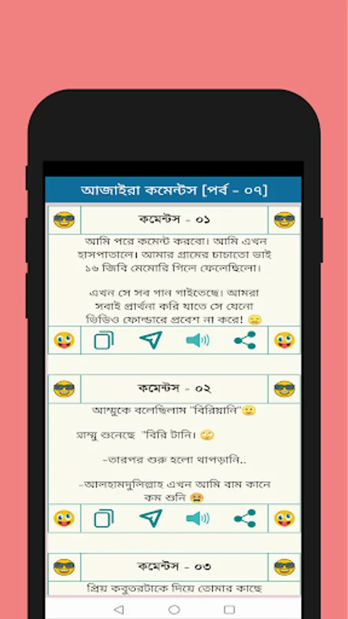 মন খুলে হাসির জন্য এই অ্যাপসটি কাজে দিবে। কমেন্ট পড়বেন আর হাসবেন। এই অ্যাপসটিতে সব ধরনের কমেন্ট করার জন্য প্রয়োজন ।