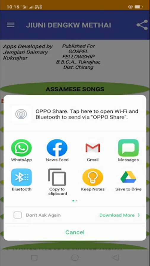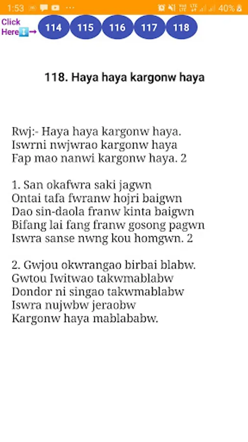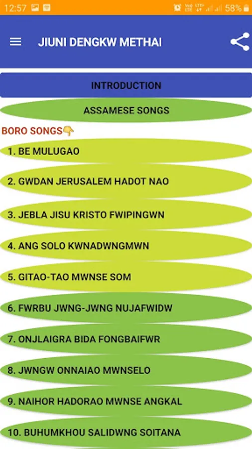 "Jiuni Dengkw " is a Christian song book in Bodo language used in the Church and Some Assamese songs are also added. All the hymns in this Android Application are collected from "Jiuni Dengkw " book published in 2010 for Gospel Fellowship under BBCA Tukrajhar.