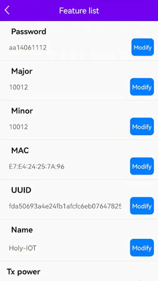 1 .Configure UUID,Major,Minor ,Tx power ,broadcast interval ect.