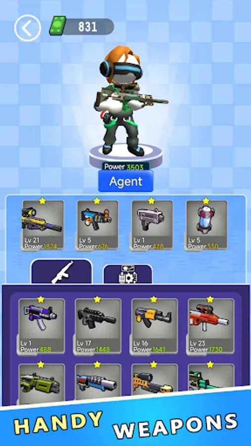 As you progress in the game, unlock and recruit the elite agents. Each agent comes with their own distinctive style, properties and skills.