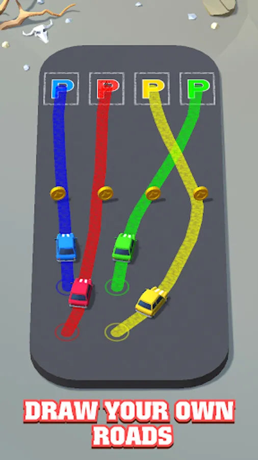 This is a simple car parking puzzle game. Each car has their own parking area. Draw a safe road to help your car to get to their parking spots safely! Drive your car carefully through impossible roads.