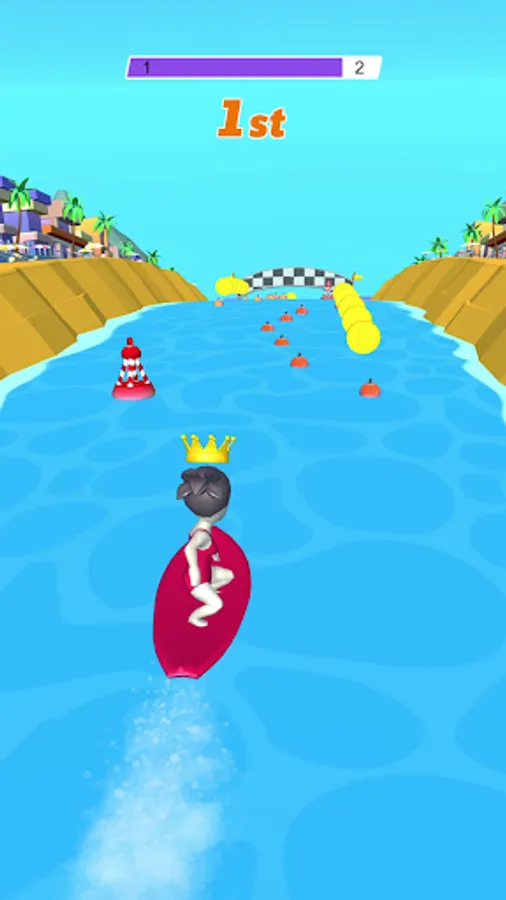 Hold to accelerate, release to fly. Pass all waves in the road, and be the first one.