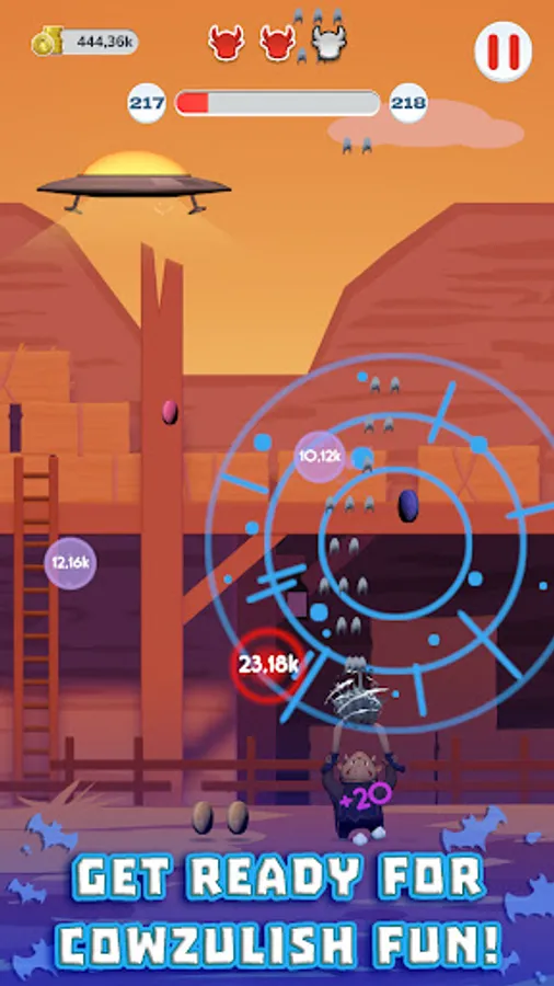 Equipe your cow amongst a series of fun and exciting skins and get ready to shoot aliens! Play in a hyper immersive environment with high quality sound effects and 3D graphics. Add more fun to the game with additional unlockable features obtainable thanks to your in-game achievements. Give your very best, challenge your friends and stay on top in leaderboards!